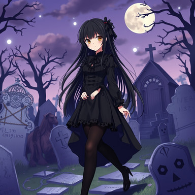 #anime #animegirl #gothic #black #boots #cemetery #choker #corset #dark #dramatic #edgy #elegant #enchanting #fantasy #fierce #gloves #high #intricate #lace #layers #midnight #moonlit #mysterious #night #purple #shadows #silhouette #spooky #stylish #victorian