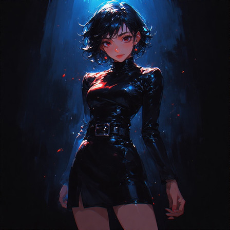 #anime #videogamefanart #digitalart #artwork #backlight #black #character #concept #dark #design #dress #elegant #fashion #girl #illustration #latex #leather #light #manga #minimalist #mysterious #ponytail #pose #shadow #shiny #silhouette #style #vinyl #woman #art