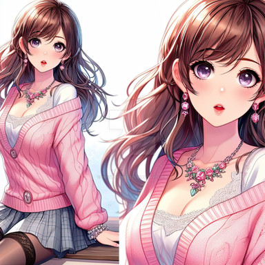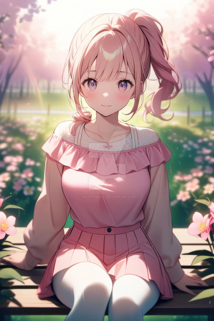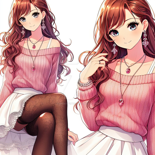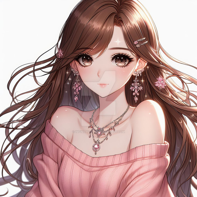 #digitalart #anime #portrait #beautiful #blondehair #blush #bokeh #casual #closeup #cozy #cute #friendly #gentle #glowing #happy #illustration #jewelry #kawaii #necklace #ombre #pinkeyes #pinkhair #pinksweater #sliceoflife #smile #softlight #sweater #sweet #warm #cableknit