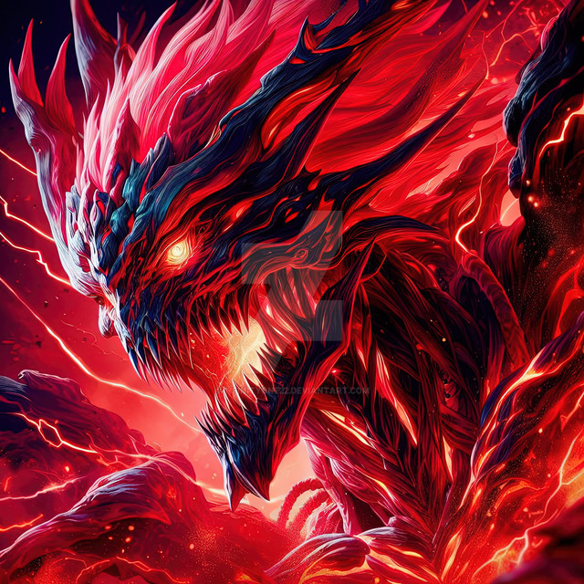 #brightcolors #creature #darkart #detailoriented #digitalart #dynamic #electric #energy #epic #fantasy #fearful #fierce #glowingeyes #horrific #illustration #intense #intimidating #magic #majestic #menacing #mystical #otherworldly #powerful #red #surrealism #vibrant #vividcolors #art