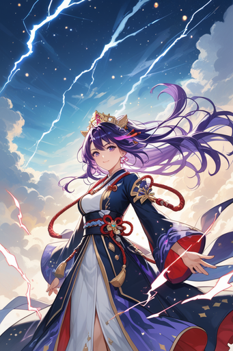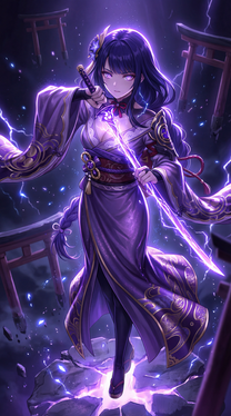 #videogamefanart #warrior #magic #kimono #digitalart #anime #characterdesign #fantasyart #animeart #animegirl #beautiful #deviantart #electro #elegant #fantasy #goddess #illustration #katana #lightning #masterpiece #originalcharacter #purpledress #storm #sword #temple #thunder #trending #aiart #aigenerated #infinityone22
