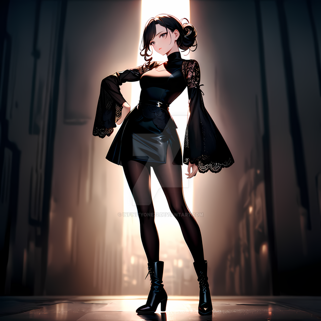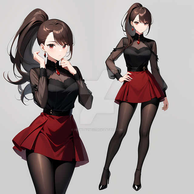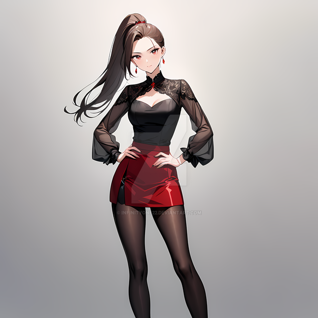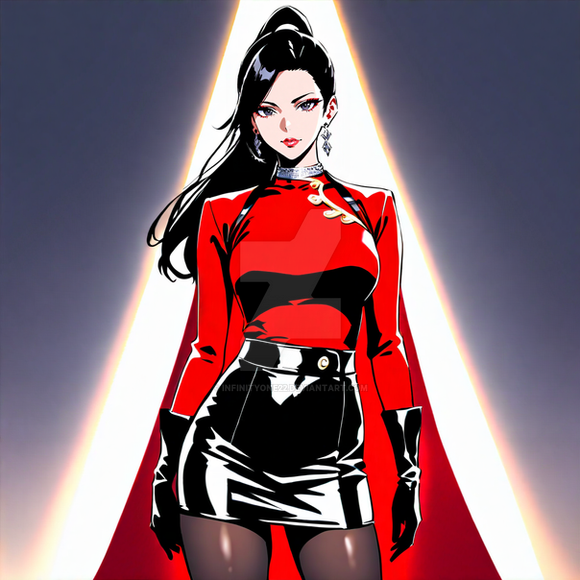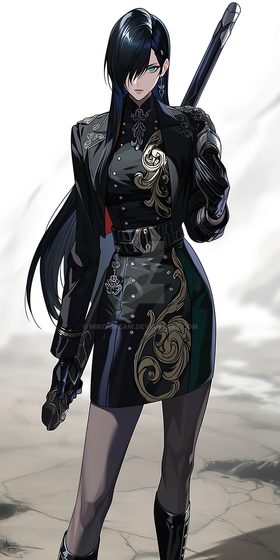 #digitalart #characterdesign #anime #belt #blackdress #blackhair #chic #commander #confident #cool #edgy #fashion #fierce #fullbody #girl #gloves #illustration #military #modern #powerful #redeyes #redlipstick #simplebackground #standing #strong #stylish #tights #uniform #redaccents #art