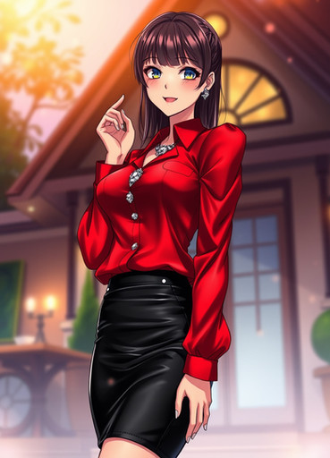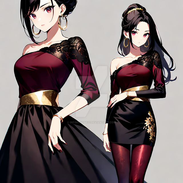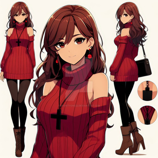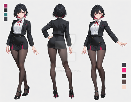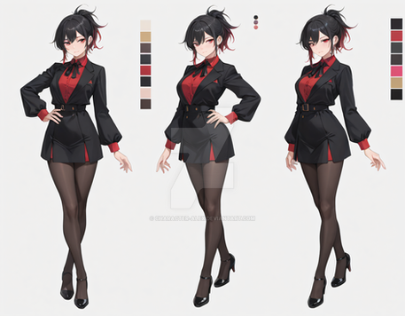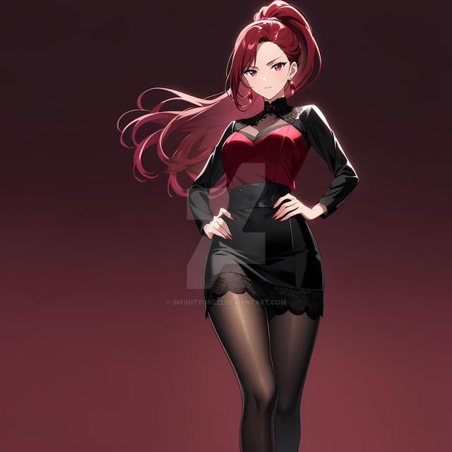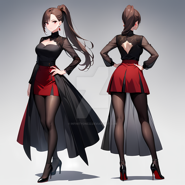 #digitalart #anime #characterdesign #animegirl #originalcharacter #artwork #beautiful #brownhair #charactersheet #drawing #elegant #fashion #fullbody #girl #heels #illustration #lace #manga #oc #outfit #pantyhose #ponytail #pose #redeyes #redskirt #seethrough #skirt #tights #art #infinityone22