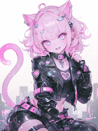 #digitalart #characterdesign #animegirl #anime #beautifulgirl #black #boots #bow #catears #catgirl #confident #croptop #cute #dynamicpose #girl #illustration #jacket #leatherskirt #pink #pinkeyes #pinkhair #ponytail #sexy #tights #infinityone22