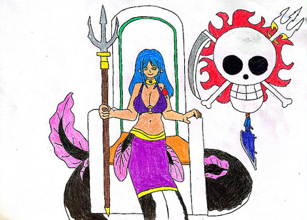 She however has a weak point, she is a big fan of the Straw Hat Pirates, especially Luffy. Her fanaticism was born from her when she saw Luffy's first reward and investigated the circumstances. Her admiration for him is such that she refers to him as Luffy-Sensei (a suffix used to refer to someone like a teacher or teacher), she was also very excited about Luffy's fight with Brutus, she even wanted to kill him so he wouldn't bother anymore, but she was embarrassed to approach him and when she saw him pass by, she felt unable to talk to him.