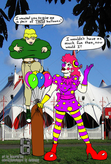 Cool and funny! I like the idea of her being a demonstrator for the balloons! She's doing a good job (if unwillingly!).