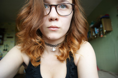 the girl with eyeglasses and red hair like kristian dust