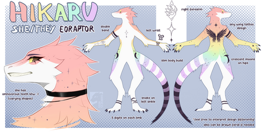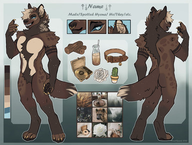 my fursonas new ref!everything drawn by me aside from the chibi front and back view, thats from a base by enjoipandas ,, go check em out!