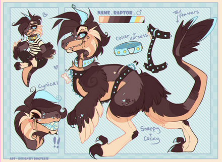 a ref for my raptor sona Sahara! she just got some slight tweaks, mostly light colour changes.art and character owned by me, do not use or redistribute or repost w/out my permission, thanks.