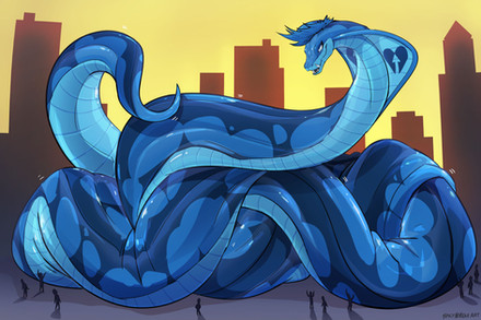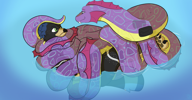 “Ssso...just because it's your birthday you think you can just help yourself, hmm?” Vox peered down at the eager little seadragon wriggling among his coils.Vox had ventured outside for some sun, but the feeling of little paws scaling the haphazardly-draped loops of muscle had awoken him. Little Rei seemed eager enough, perhaps believing the mere fact that it was another year for him gave him the right, but Vox's nap had been interrupted and that was usually a very bad thing for all involved.