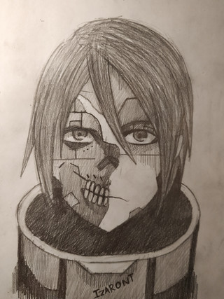 A skeleton boy i painted. He looks kinda sad, I wonder what he's going through...here's the pin i used as my reference: