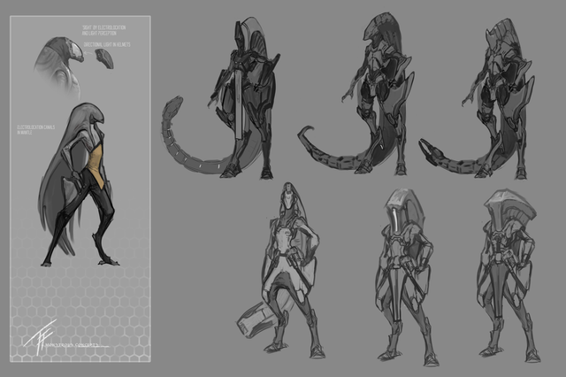 It feels slick and neat. I wonder, did you use the design of the Engineer from Prometheus as inspiration, 'cause I'd thought HR Giger's work is cool.