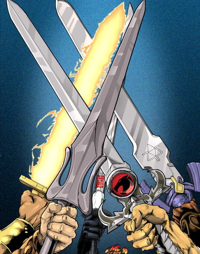 I was listening to the Geek Out Loud podcast [link] the other day and the subject was the 80's. Man I loved growing up in the 80's. We had the best cartoons, clothes, and stuff (lawn darts anyone?).Anywho it inspired me to take 5 of my favorite heros with swords back in the day and draw them. From left to right:
