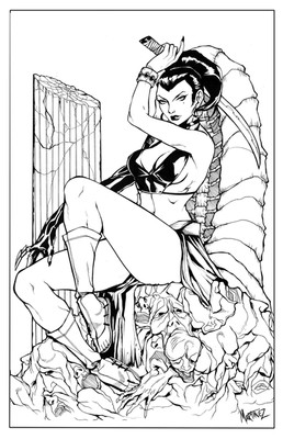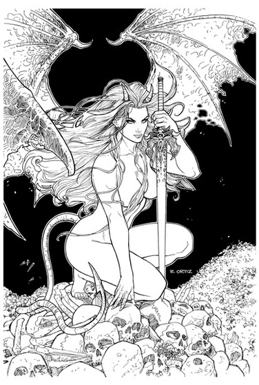 Morrigan from Darkstalkers penciiled byI took a liking to this piece and wanted to try out a new Maru nib for inking. Morrigan is mostly brush while the background is almost all Maru nib. I really like the way it turned out.