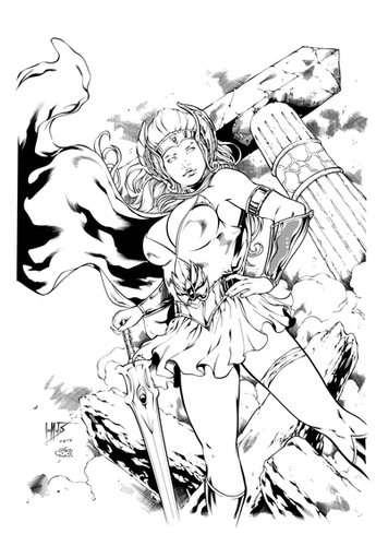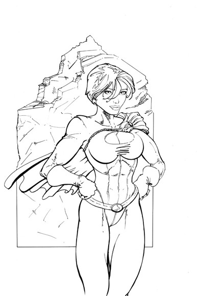 Power Girl byAnother great Chris piece that I wanted to ink. Took the mountains in a different direction. Plus added some swirlies in the clouds. Not sure why. Kinda going on the whim of inspiration