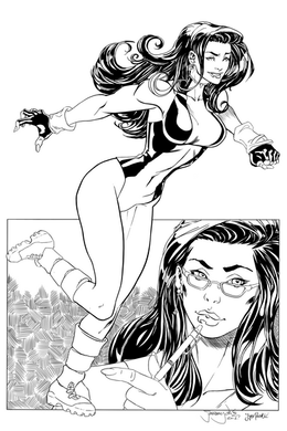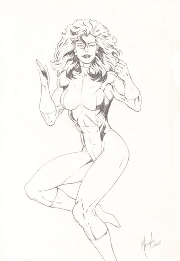 She-Hulk byGetting back into inking and thought I'd give ole Shulkie a whirl. Jeremy always draws spectacular faces so I kept my usual shadowing to a minimum here. Added a bit of texture to the close up of her eyes. Otherwise I kept to the pencils closely and just added line weights.