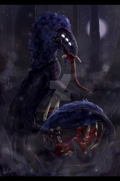 And Alic, you captured his character perfectly! That very good, horrifying face, there he is going to scare some humans again, hihih! I love especially how you drew his feet, especially the "hands", very nice sharp nails and that kind of worn fur. And of course the one pulling the face away.... That's just so creative, I'm so glad you did something like that!