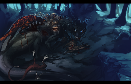 this is awesome!! again I love your perspectives and the colours. and I really like the lighting and they eyes around the edge! the style you used is different but looks really great