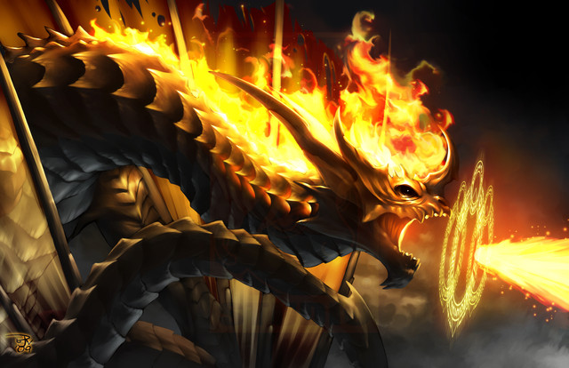 The pose, the flames, the semi background, the scales qskjdfhldgjoΓΉfsgfkhd