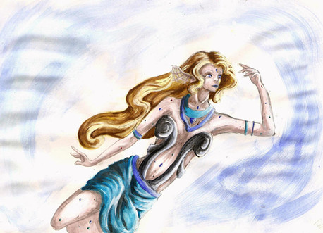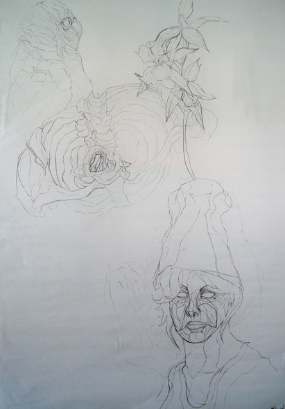 A piece in my concentration for AP. The colors look much more vibrant on the original.Medium: Watercolor, colored pencils, ink