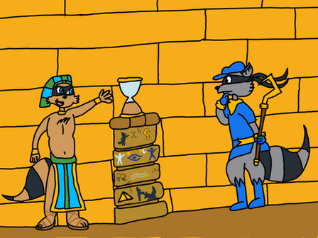 I known whats going to happen since Sly got stranded in ancient Egypt he met his ancestor Slytunkhamen telling him about doing a book so he can pass his skills to his children and their children and on and on. this give Sly a idea he told Slytunkhamen who he really was soon Sly wrote a note in the book so that his friends in the future will known where he is and come for him