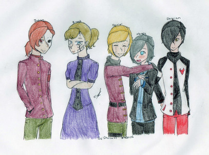 It's the squad. Too early? Yeah, probably too early. So, here's the debut! Descriptions will go from left to right!Camellia (Lemon) Berry: The sweetheart of the group. She doesn't like dressing up unless she's going out with her girlfriend. There seems to be a reason why she only trusts the short grumpfuss, but that information hasn't yet been shared with the group.