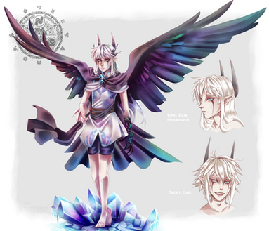 I'M SORRY I love drawing wings so much I swear I don't do this on purpose LOL. At least they are optional, he likes to manifest them to make himself look bigger and more imposing but it's kind of funny because he's really only an inch taller than Kyuvel. |D