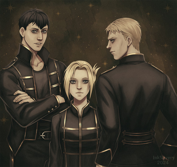 #fanart #attackontitan #digitalart #militaryuniform #logh #male #malecharacter #oskarvonreuenthal #attack_on_titan #reinerbraun #attackontitanfanart #bertholdthoover #wolfgangmittermeyer
