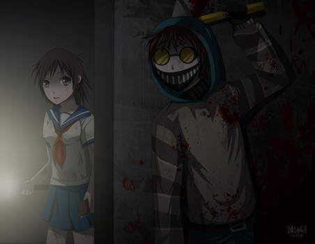 One day she meets Jeff, and try to be her friend, but he's crazy, XD, so try to kill ..... she flees to the forest,
