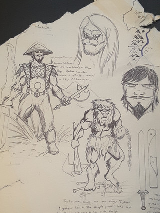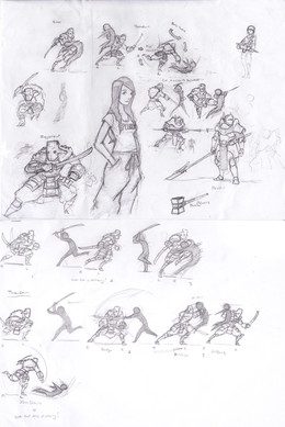 Swords and armor look great, I lieke the cape alot too, very dynamic. The tigers or whatever, are a nice touch! Cool stuff.