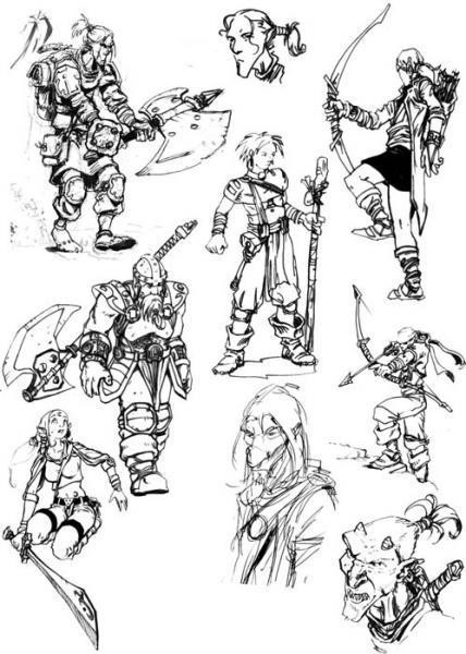 I don't so much mind the use of brown as a base tone for the "black skin" of the drow... it certainly seems more natural than blue, but check out the skin of some African or Australian natives and you can see how deeply black a skin tone can be. If I were to take this to color, I'd probably use a deep, rich red-brown tone with minimal highlights.