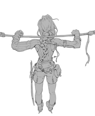 The twisting of the torso and forshortening is excellent. You really know how to create a sense of space and movement.