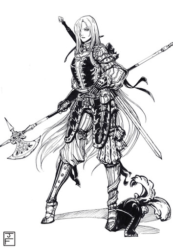 The first thing that came into my mind was Vagrant Story, but only because the elbows and gauntlet caught my eye first. Other than that, its nice, and has that "ting" of mystery on surrounding who this swordswoman is.