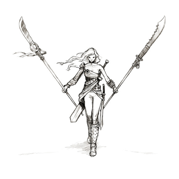 I think it's important to have a least a little understanding of the subjects I work with most, so I do a lot of reading and research. I do a lot of content with swords in general, between my fantasy RPG freelance work and my own projects, so it's one of those things that I know a lot of little trivia on, mostly surrounding either Asian or Western European blades.