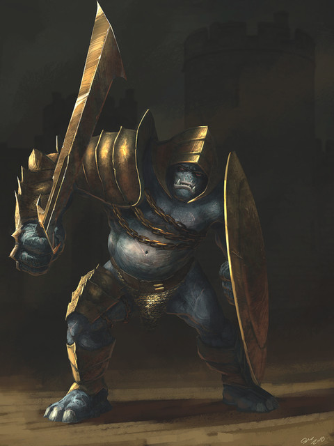 This is my first and oldest illustration of them, and if there's one thing I did entirely wrong here it's those swords (both of 'em). I've done several more koloss illustrations since that are more accurate. They appear in The Mistborn Adventure Game, and now that it's come out on the shelves I'll have to see if I can get some more pieces up online.