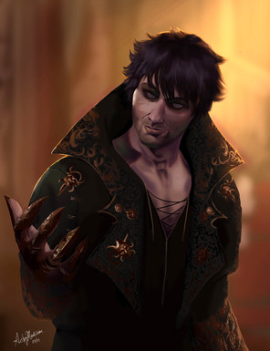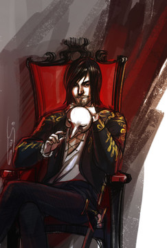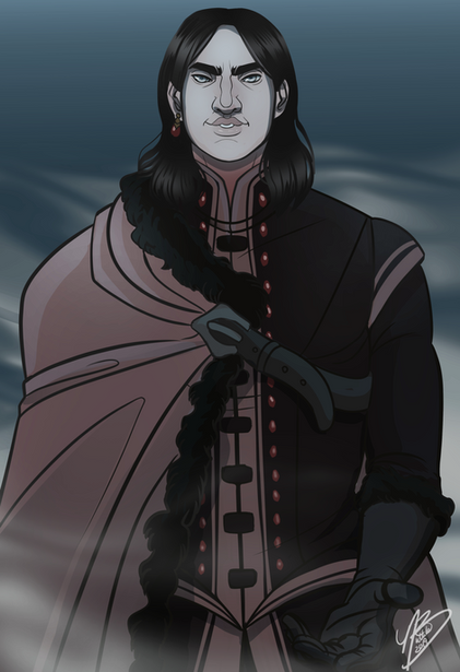A rough portrait of the Immortal Lord Ruler, from the Brandon Sanderson novel Mistborn: The Final Empire. This was painted up for Paloppa Pictures (the company pitching the film) back in 2012. I tried going for the white coat but they wanted darker tones. We went though a whole bunch of hairstyles, looking to see something different than what I'd done previously with the very long, straight black hair. And I know plenty of fans saw him that way as well, so this one's for you.Related content