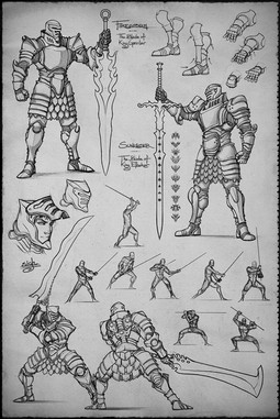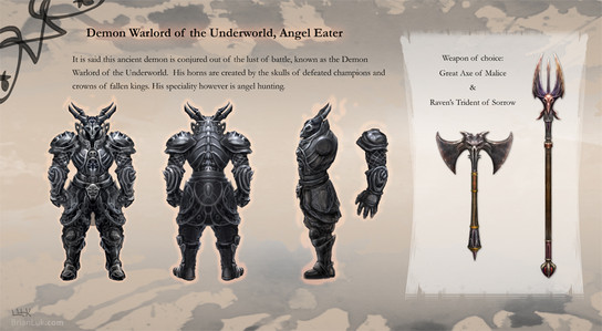 Wonderful armor design, I like the faces in the chest plate and the old scroll look :]