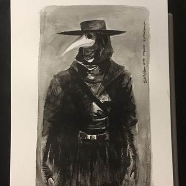 #aquarelle #blackdeath #bubonicplague #drizzle #plague #rain #silhouette #silhouettetrees #sunrise #watercolour #yersiniapestis #earlymorning #plaguedoctor #watercolorpainting #plaguedoctormask #earlymorningsunlight #aquarelleart