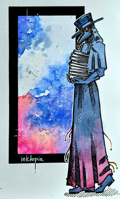 #aquarelle #blackplague #night #plague #star #starry #stars #sundial #theblackdeath #watercolour #yersiniapestis #tellingtime #timetelling #clock #milkyway #nightsky #plaguedoctor #starrynight #starrysky #watercolorpainting #plaguedoctormask #aquarellepainting