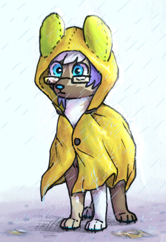 #adorable #anime #anthro #cat #cute #drawing #furry #kemono #kitty #neko #painting #rain #umbrella