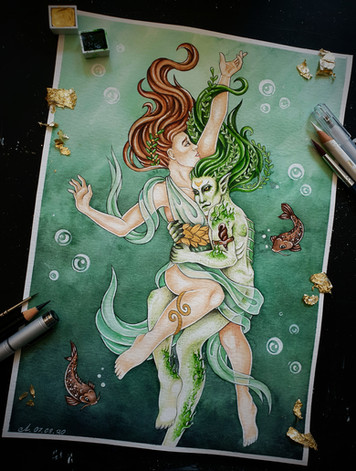Beautiful the embrace is so... Beautiful. Β Reminds me a little of Yoshitaka Amano's work.
