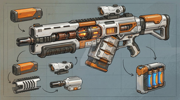 The design of the Energy Repulsor embodies the style of cyberpunk and futuristic technology: angular shapes, metallic finishes and bright neon lights create the impression of a technological future where weapons become an integral part of everyday life.