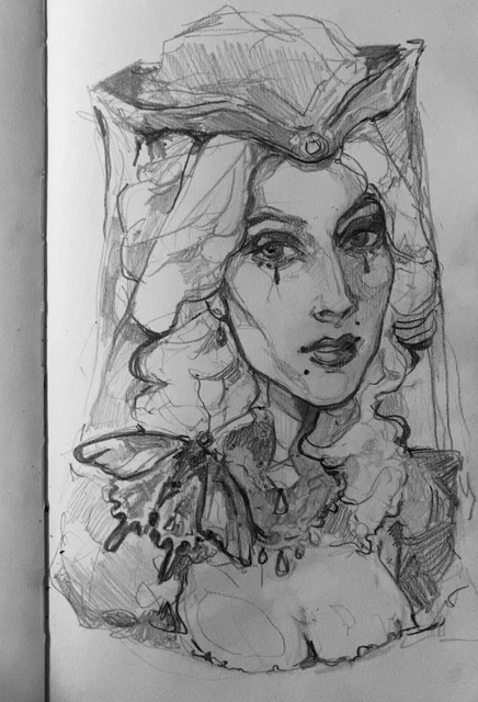 A daily-planner sketch of forgotten OCA nod of love to the late medieval portrait styles.
