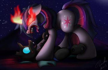 As for image, looks really cool, but I still do not like Sombra to be so OP, and if Sombra defeated princesses and elements and entire Equestria army, how is Twilight going to kill someone so OP as normal Unicorn, come on, I am sure you can make up far better back story for Twilight becoming Solid Twilight Sparkle.