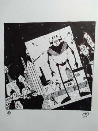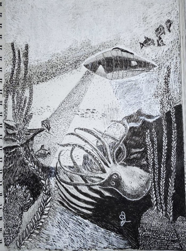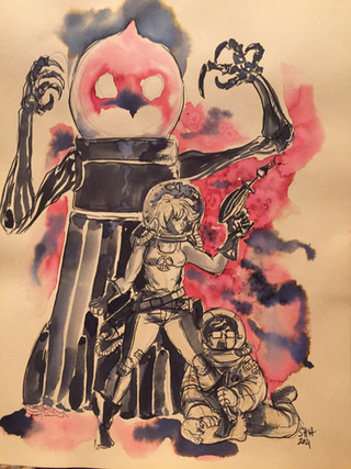 A movie still for Halloween/Inktober. The movie is The Man from Planet X. I never have seen it. But I bet it's bad! Love the pictures of old 1950's sci fi movies. Usually get bored to death watching them! There are a few exceptions like the original The Day the Earth Stood Still, which is my favorite science fiction movie. It has great writing.Anyway, this was done with technical pens and India INk.