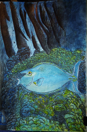 Oil pastels and watercolor on mixed media sketchbook.I'm using the Canson XL mixed media sketchbook and I'm not in love with it.