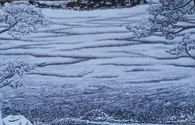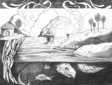Done in ink.My attempt to show how the sun is the start of the food chain because of photosynthesis.