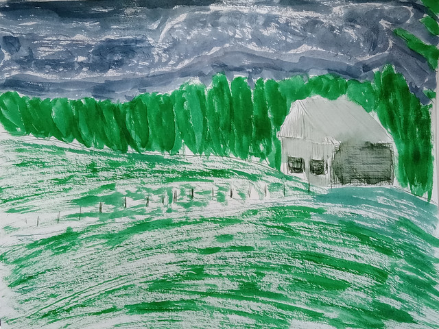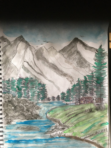 This is a watercolor that I did along with the YouTube channel of Rick Surowitcz.I modified it as I only wanted a landscape reference to give ideas.