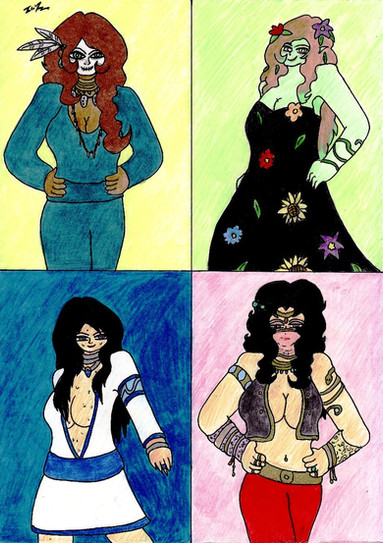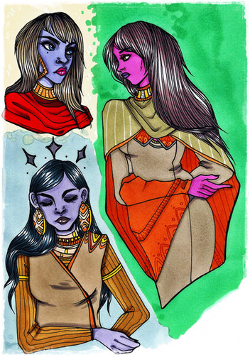Yaysies! I'm thrilled you like it- I went to town on her hair, sorry it's not as dark a brown as in your piccy- ran out of brown markers...grrr...I added ivy into her hair as I see her being a different water mage to the Imelda- more mossy rocks and springs in the forest, thus linking to the boar. Yayyyyy! for noticing the boar tusk necklace- I'm so thrilled you did! I didn't want to put tusks in her hair in case it made her look like a demon! lol