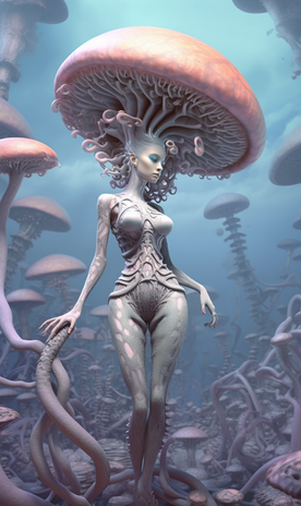 #digitalpainting #alien #creature #scifi #monstergirl #ai #female #fleshy #sciencefiction #skinny #space #tentacles #thin